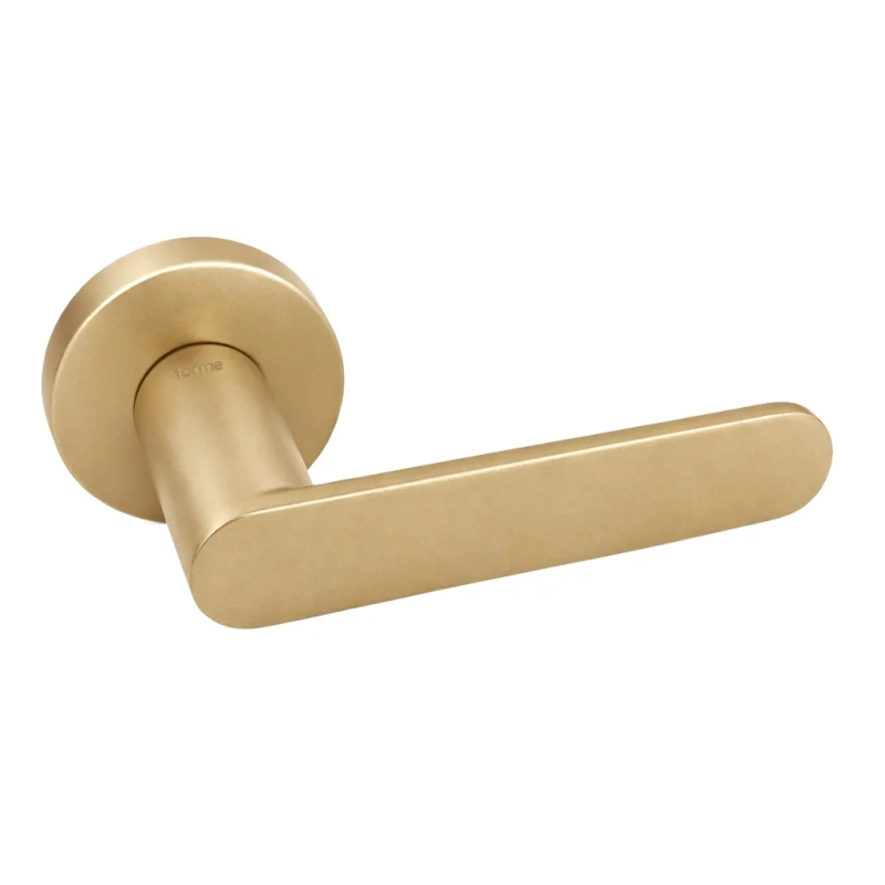 Дверная ручка Forme Round 519A на круглой розетке подходит к современным дверям в стиле минимализм, лофт, плоским щитовым дверям.